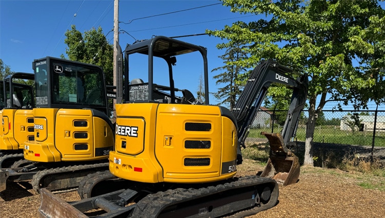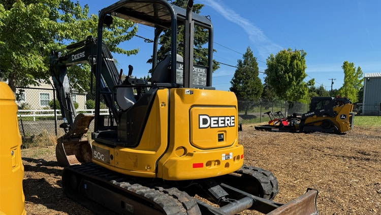 The open cab design of the John Deere 50G provides operators with an airy and unobstructed view of the work area, enhancing visibility and situational awareness. This design promotes better communication on-site and allows for easier entry and exit, making it ideal for quick tasks or frequent adjustments. The cab is designed with operator comfort in mind, featuring adjustable seating and intuitive controls that facilitate ease of use. Overall, the John Deere 50G excavator combines strength, efficiency, and operator-friendly features, making it a valuable tool for contractors and landscapers tackling a variety of heavy-duty applications.